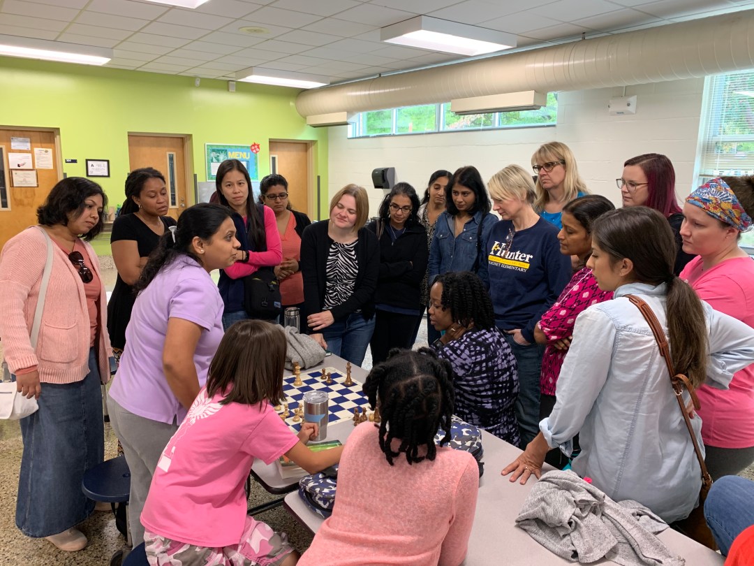 It’s no secret that chess moms deserve a medal; after all, they lend steady support to their kid’s chess-playing efforts in many ways, not the least of which is by logging weekend hours perched on uncomfortable chairs in hotel lobbies, school cafeterias, or chess centers while their future grandmasters hone their skills over the board. But on October 9th, 18 chess moms flipped the switch and played for trophies when they chose to showcase their own (mostly newly acquired) chess skills at the first ever “Chess Moms Play Chess, Too” tournament held at Hunter Elementary School in Raleigh, NC and organized by my husband, Mark, and me. Read more about our event in this article I wrote for US Chess: Chess Moms Play Chess, Too