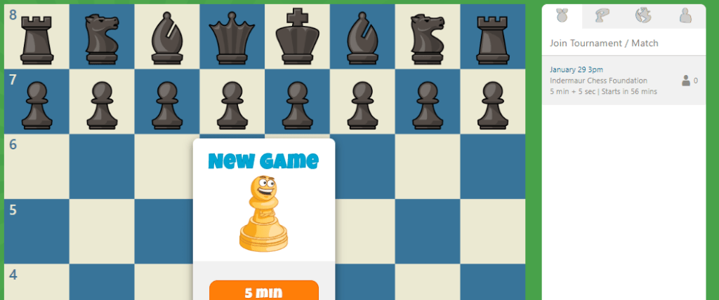 You will see the names of upcoming Fast Chess tournaments on the right side of the next screen. Click on the name of the tournament you want, and then click the orange “Join” button.