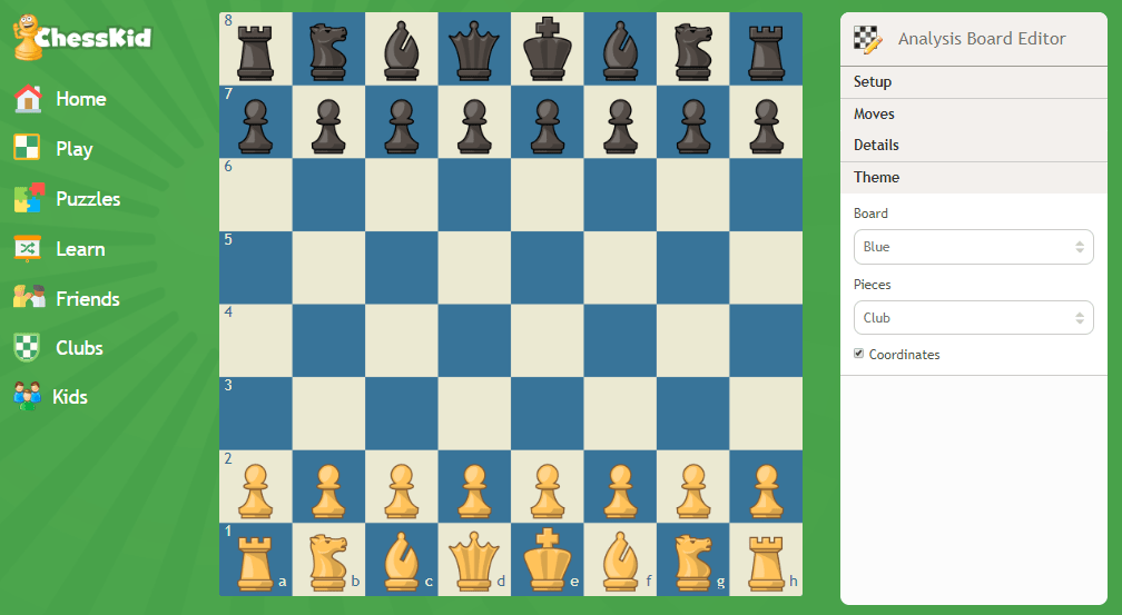 ChessKid has an exciting new feature, the Analysis Board Editor, which you can use to review your children’s games or to set up positions for lessons.